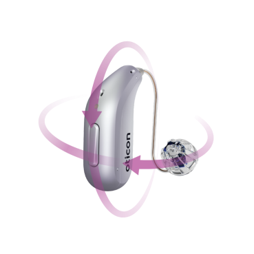 The Oticon Intent features 4-D user intent sensors that allow the hearing aid to adapt to your listening needs in the moment, from group conversation to one-on-one. The sensors determine your intent by detecting: